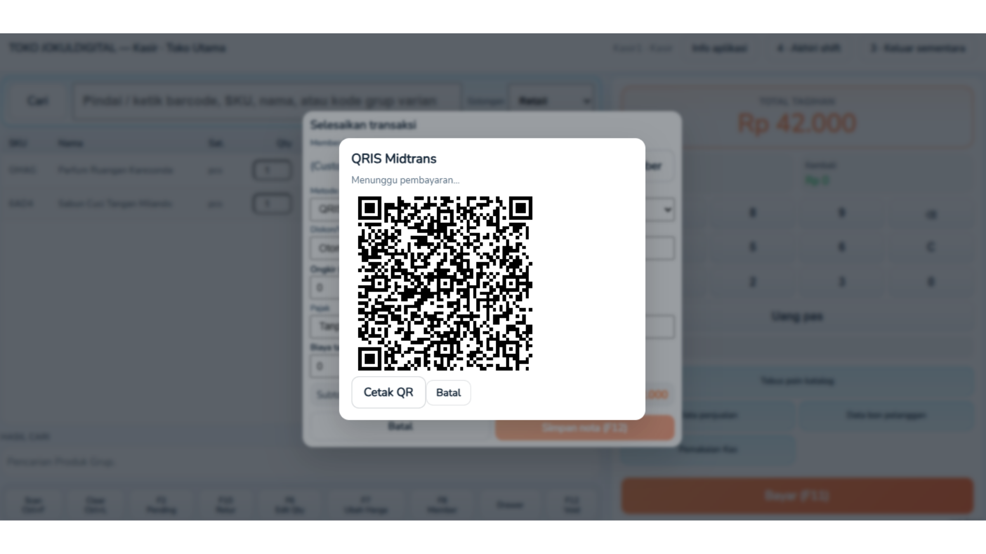 Deskripsi singkat (2–3 kalimat): Kelola penjualan di kasir, stok barang, pembelian ke supplier, hutang piutang, laporan, hingga multi cabang dalam satu aplikasi. Mendukung barcode, beberapa level harga, member/loyalitas, dan pembayaran QRIS lewat Midtrans pada mode yang didukung. Aplikasi berjalan di PC Windows; database disimpan di MySQL (lokal, LAN, atau server sesuai kebijakan Anda).